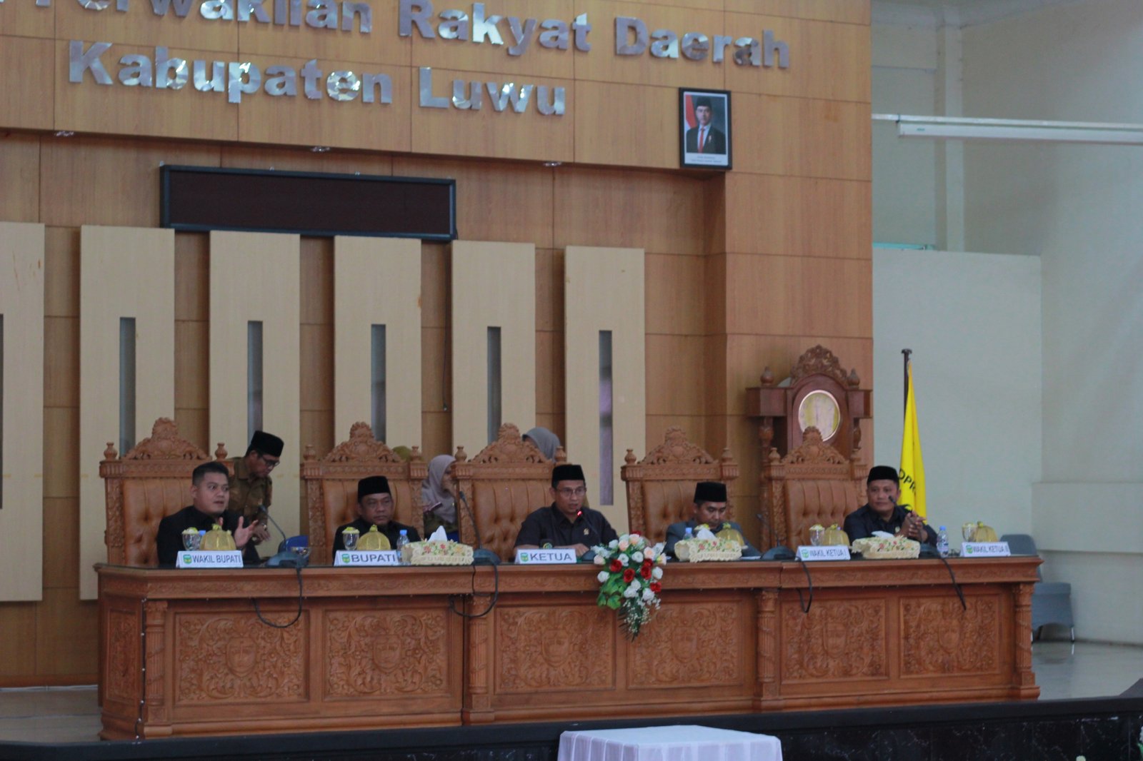 LUWU, TEKAPE.co – Dewan Perwakilan Rakyat Daerah (DPRD) Kabupaten Luwu menggelar Rapat Paripurna Penyerahan Persetujuan Perjanjian Hibah antara Pemerintah Kabupaten Luwu dan Perum Bulog, Senin (6/10/2025).