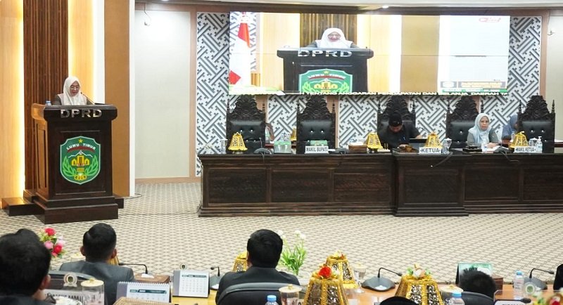 Penyerahan Rancangan Peraturan Daerah (Ranperda) APBD 2026 dilakukan oleh Wakil Bupati Luwu Timur, Hj Puspawati Husler, kepada Ketua DPRD Luwu Timur, Ober Datte, dalam rapat paripurna yang digelar di ruang rapat utama DPRD, Senin (27/10/2025).