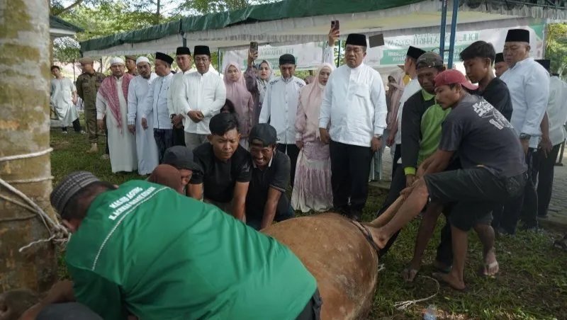 ASAHAN, TEKAPE.co – Bupati Asahan, Taufik Zainal Abidin Siregar S.Sos. M.Si didampingi Wakil Bupati Asahan, Rianto SH. MAP memantau penyembelihan 111 hewan kurban yang terdiri dari 89 sapi dan 20 kambing, Jumat (06/06/2025) di alun alun Rambate Rata Raya Kisaran, Kabupaten Asahan.