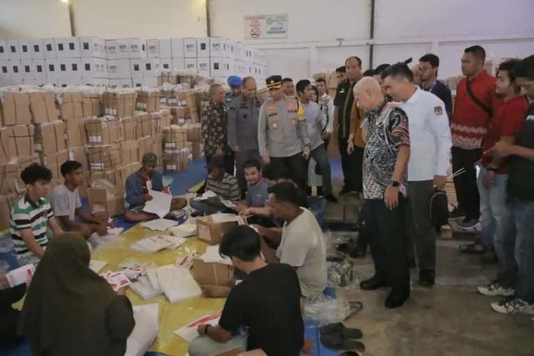 ASAHAN,TEKAPE.co – Bupati Asahan H. Surya, BSc bersama dengan Forkopimda Kabupaten Asahan melaksanakan peninjauan di Gudang Logistik Pemilu 2024 KPU Kabupaten Asahan di Jalan Sisingamagaraja Kelurahan Sendang Sari Kecamatan Kota Kisaran Barat, Kamis (11/01/2024).Turut hadir dalam kegiatan tersebut Wakil Bupati Asahan, Dandim 0208/Asahan, Kapolres Asahan, Kajari Asahan, Ketua PN Kisaran, mewakili Danlanal TBA, Asisten Pemerintahan dan Kesejahteraan Rakyat, OPD, Ketua KPU Kabupaten Asahan dan Ketua Bawaslu Kabupaten Asahan.Dikesempatan tersebut Bupati Asahan mengatakan, peninjauan ini dilakukan untuk melihat secara langsung proses pelipatan kertas suara dan melihat secara langsung persiapan KPU Kabupaten Asahan dalam pelaksanaan Pemilu 2024 mendatang. Lebih lanjut Bupati mengatakan, pemantauan ini akan terus dilakukan, dengan tujuan agar rangkaian pelaksanaan pesta demokrasi di Kabupaten Asahan berjalan sesuai rencana dan harapan semua pihak.Bupati juga meminta semua stakeholder terkait untuk terus bekerja sama, untuk menyukseskan Pemilu 2024 serta mewujudkan Pemilu yang aman, kondusif serta nyaman,” ungkapnya. (Alam)