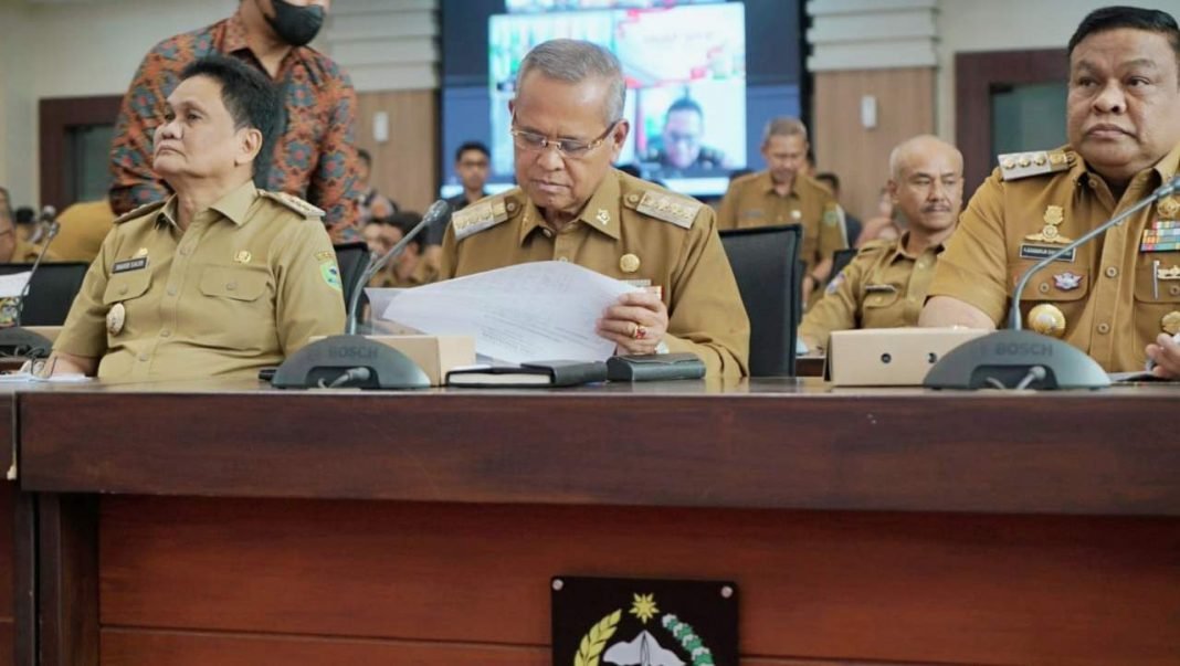 Rakornas TPID yang dilaksanakan secara virtual di ruang rapat pimpinan Kantor Gubernur Sulsel dihadiri langsung oleh Penjabat Gubernur Sulsel, Bahtiar Baharuddin bersama kepala daerah se-Sulsel.