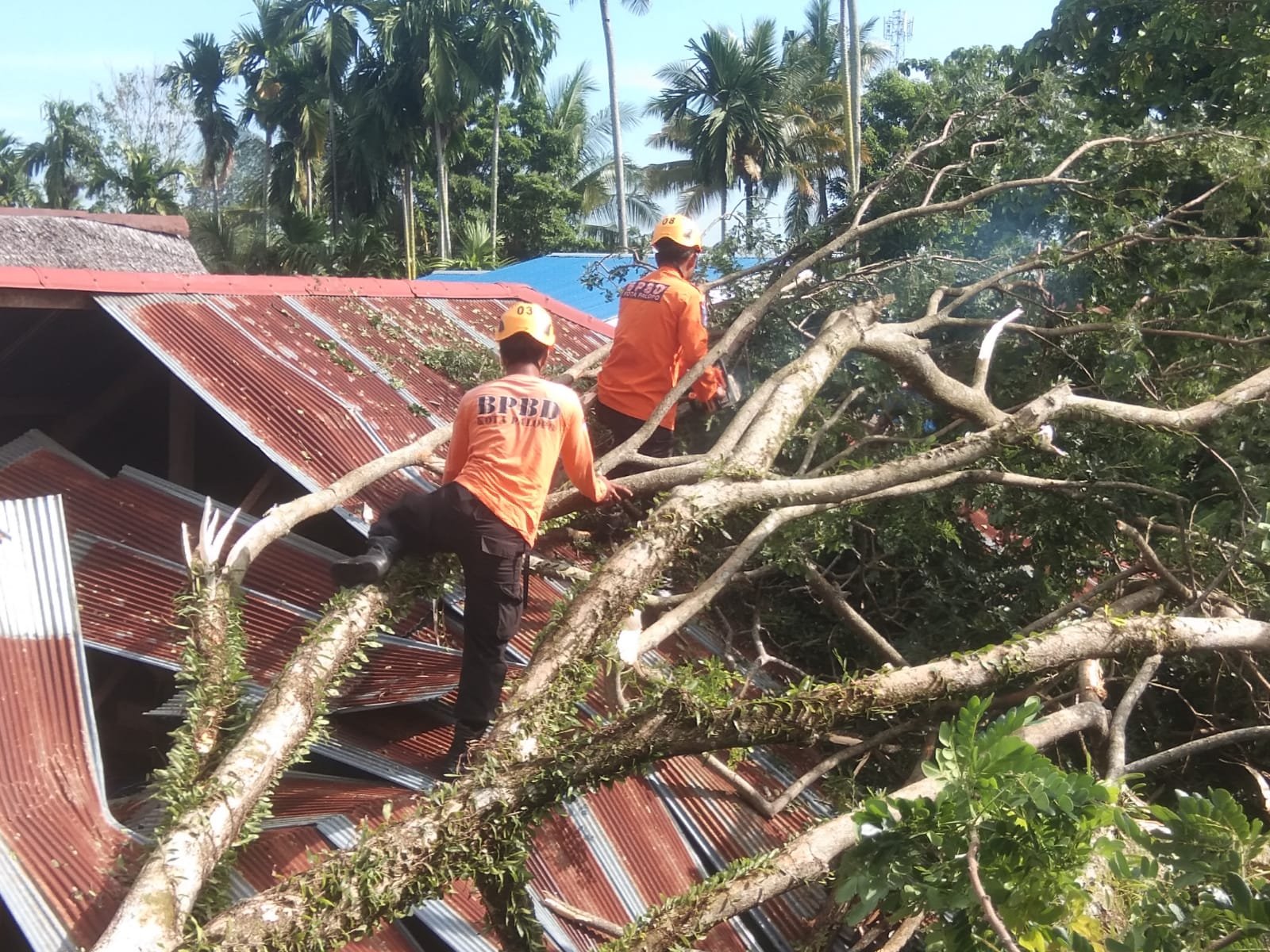 Badan Penanggulangan Bencana Daerah (BPBD) bersama TNI-Polri, Pemerintah Kecamatan dan masyarakat sekitar saat kejadian tak bisa langsung mengevakuasi pohon tersebut dikarena ada kabel listrik yang masih menempel pada pohon.