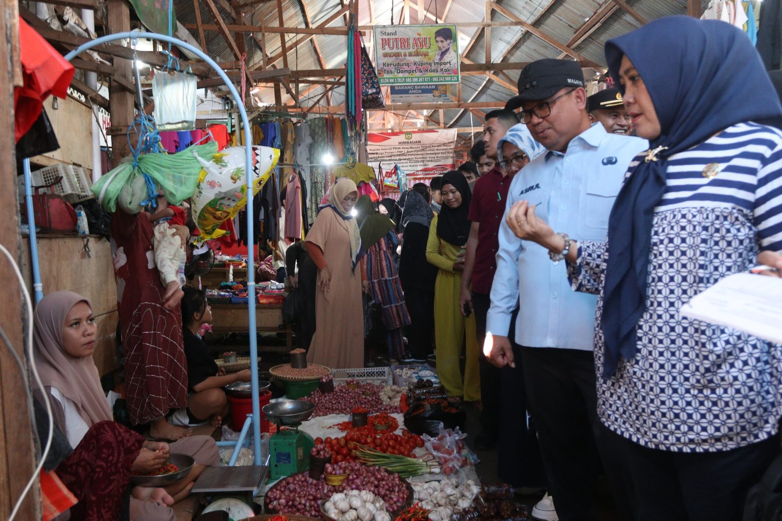 Pj. Wali Kota Palopo, Asrul Sani turun langsung melakukan operasi pasar pemantauan harga pokok jelang lebaran di Pusat Niaga Palopo pada, Jumat (05/04/2024).
