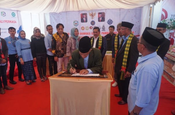 Acara kemudian ditutup dengan penandatanganan surat tugas dan sertifikat kantor yang antara lain kantor Unit Usaha BUMDES Topogaro, kantor PBM, kantor TKBM dan kantor Lembaga Penempatan Tenaga Kerja Swasta (LPTKS).