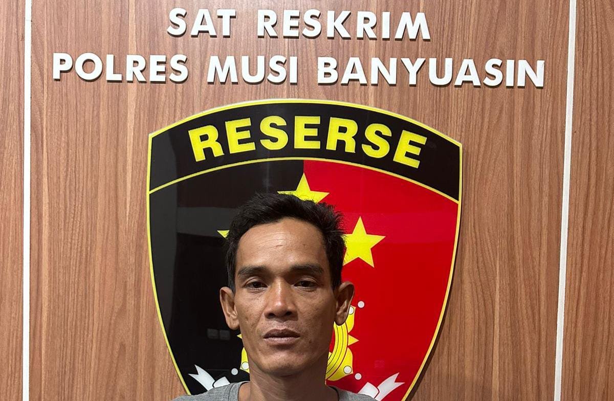 Diduga telah menyebabkan kebakaran sumur minyak ilegal (ilegal driling) di daerah aliran sungai Dawas, Dusun 2 Desa Tanjung, Kecamatan Keluang, Kabupaten Musi Banyuasin, DD (37) ditangkap polisi. Kamis, 5 September 2024.(ist)