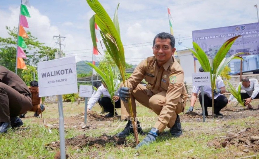 Kepala Dinas Lingkungan Hidup (DLH) Kota Palopo, Emil Nugraha, mewakili Wali Kota dalam kegiatan penanaman bibit pohon kelapa di Lahan Pertanian Lapas Kelas IIa Palopo, Selasa (9/9/2025). (Dok: Kominfo)