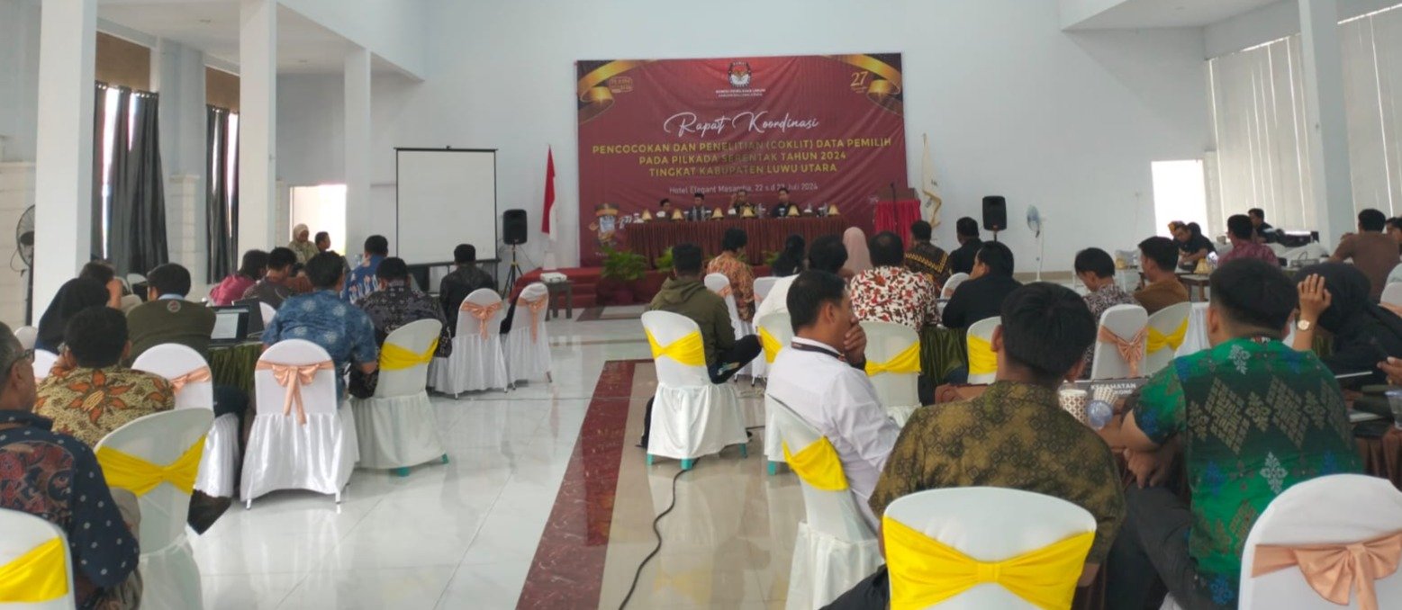 MASAMBA, TEKAPE.co – Komisi Pemilihan Umum (KPU) Luwu Utara (Lutra) gelar Rapat Kordinasi (Rakor) pencocokan dan penelitian (Coklit) data pemilih pilkada serentak tahun 2024 .