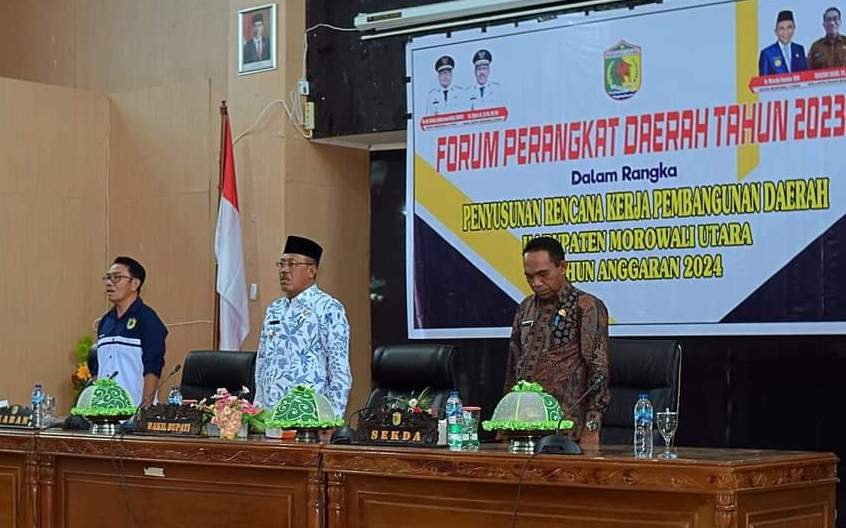 MORUT, TEKAPE.co – Wakil Bupati (Wabup) Morowali Utara (Morut), H Djira K SPd MPd, membuka secara resmi Forum Perangkat Daerah Tahun 2023, dalam rangka penyusunan rencana kerja pembangunan daerah (RKPD) TA 2024, di Ruang Pola Kantor Bupati Morut, Kamis 9 Maret 2023.