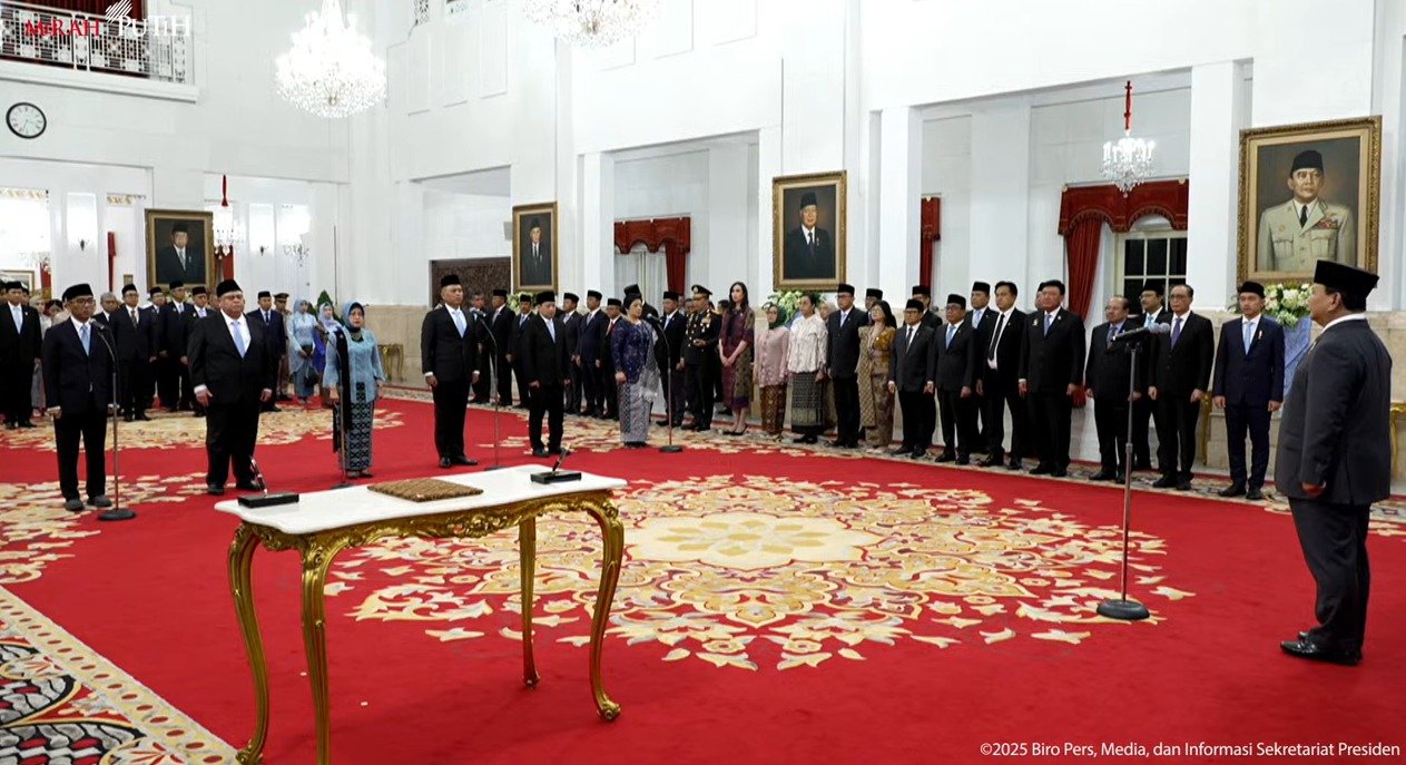 Acara pelantikan dihadiri oleh Wakil Presiden Gibran Rakabuming Raka serta jajaran menteri Kabinet Merah Putih.