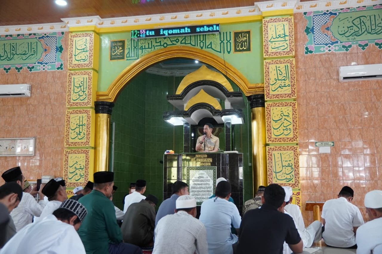 PALOPO, TEKAPE.co – Penjabat (Pj) Wali Kota Palopo, Firmanza DP memimpin kegiatan Safari Jumat di Masjid Al Ikhwan, BTP Bogar, Kelurahan Salekoe, Kecamatan Wara Timur, Jumat (27/6/2025).
