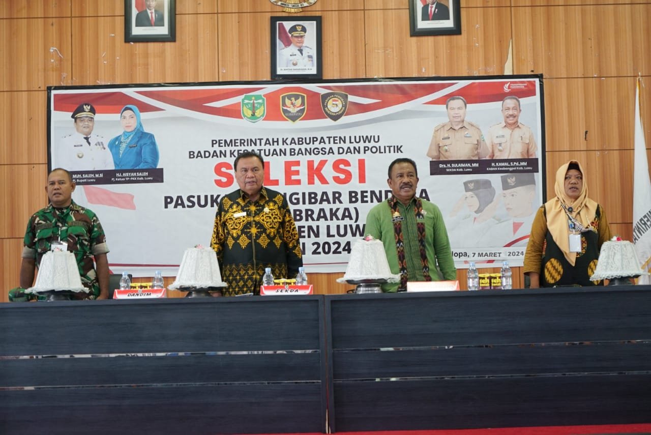 LUWU, TEKAPE.co – Sekretaris Daerah Kabupaten Luwu, Drs. H. Sulaiman, M.M secara resmi membuka seleksi calon Pasukan Pengibar Bendera Pusaka (Paskibraka) tingkat Kabupaten Luwu tahun 2024 di Ruang Pola Andi Kambo Kantor Bupati Luwu, Kamis, 07 Maret 2024.
